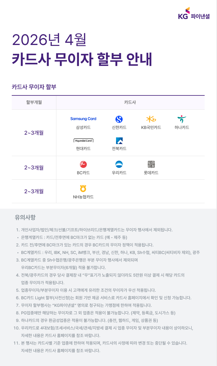우리차이나 4월 무이자할부안내