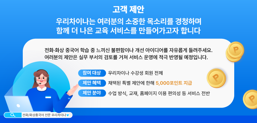 더 나은 교육 서비스를 위해 늘 노력하는 우리차이나가 되겠습니다.